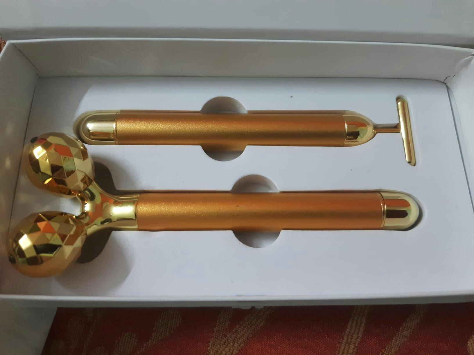 This 24K Gold Electric Roller uses micro-vibration technology that gently stimulates your facial muscles.